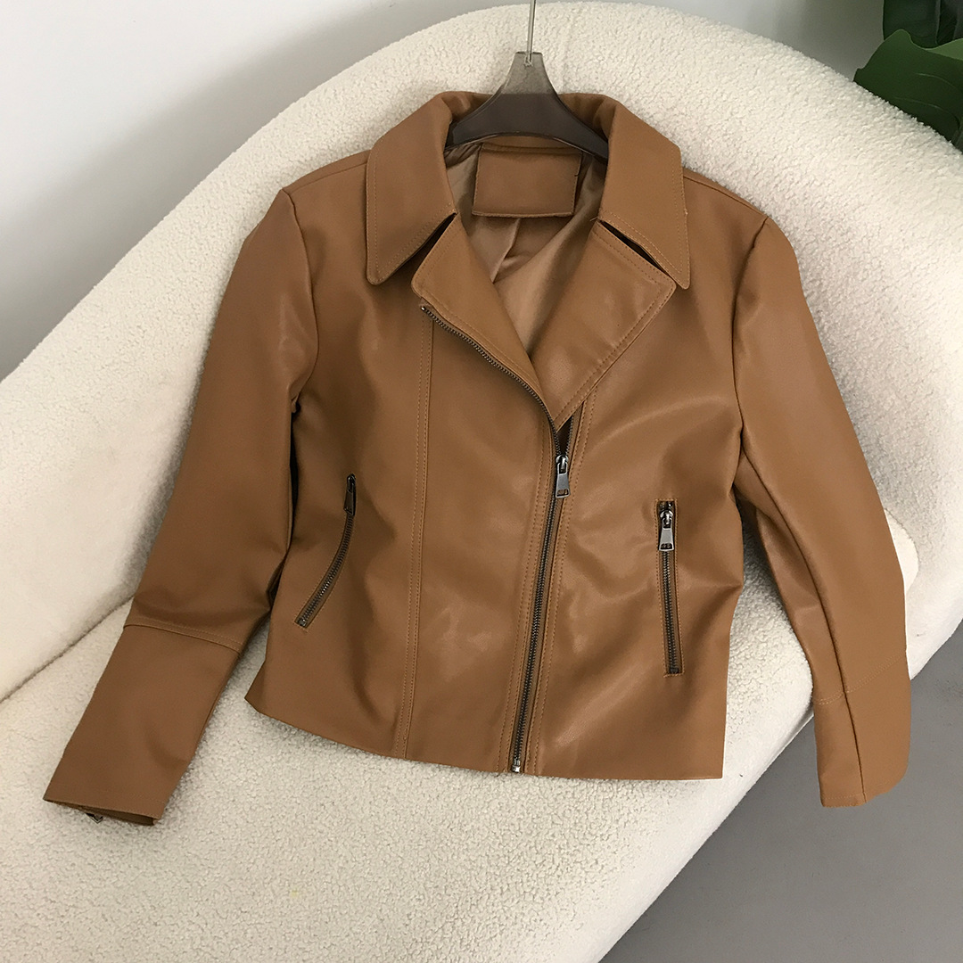 国境を越えた電気商春秋の新型ファッションはシンプルで、puの皮の服の女性の短い革のジャケットは車のコートの女性を修理します。