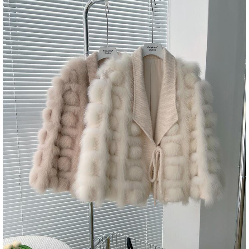 大衆デザイン感狐毛毛皮コート女2023年冬の新型若いファッションニットカーディガン
