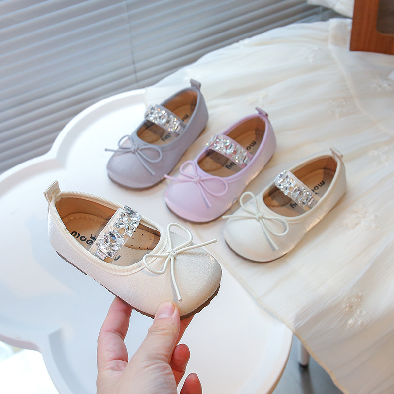 女の子のダンスの靴2025年の春の夏の新型の大きい水のドリルのキラキラする王女の靴の子供のかわいい蝶結びの靴