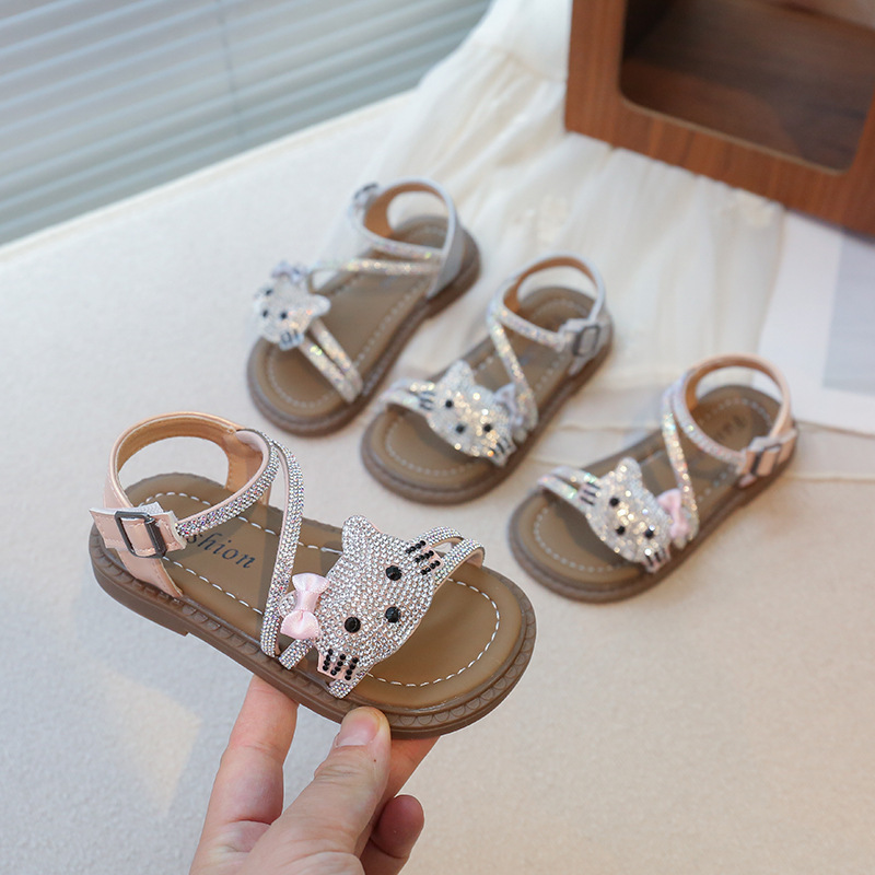 お姫様ファッションサンダル2025夏の新型カジュアルシューズ子供用ソフト底洋気ローマ靴スポット卸売り