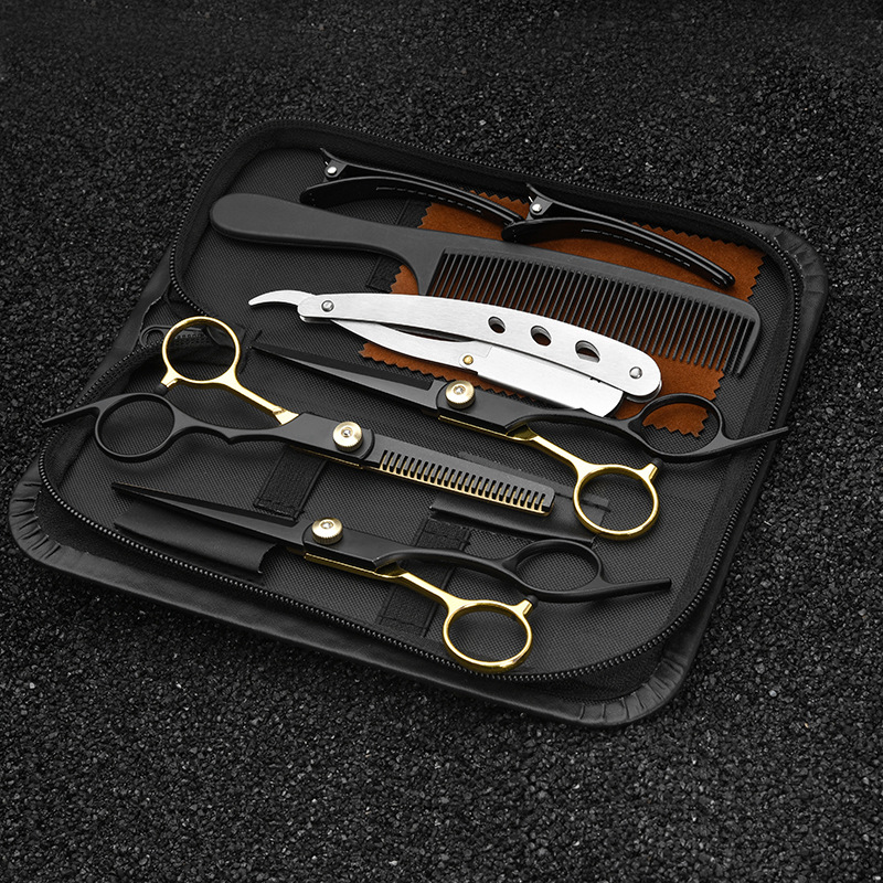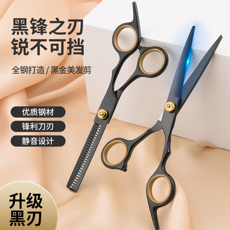 黒金理髪美容ハサミ前髪平歯ハサミセット専用ツールハサミハサミ