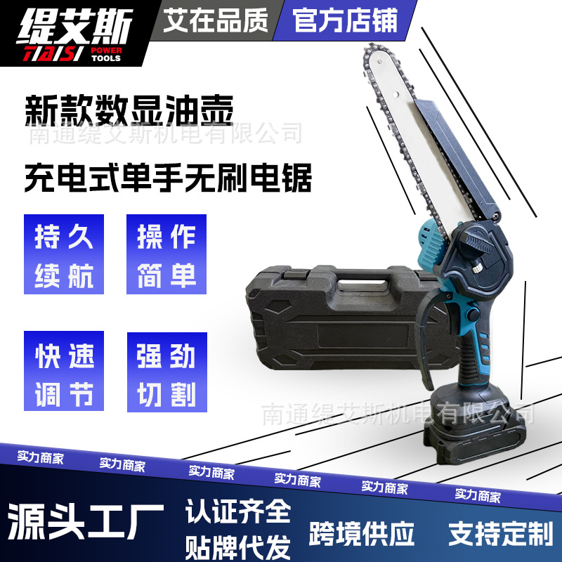 新型デジタル表示オイルポット充電式片手チェーンソー家庭用手持ち手持ちリチウム電気木切り鋸屋外チェーンソー