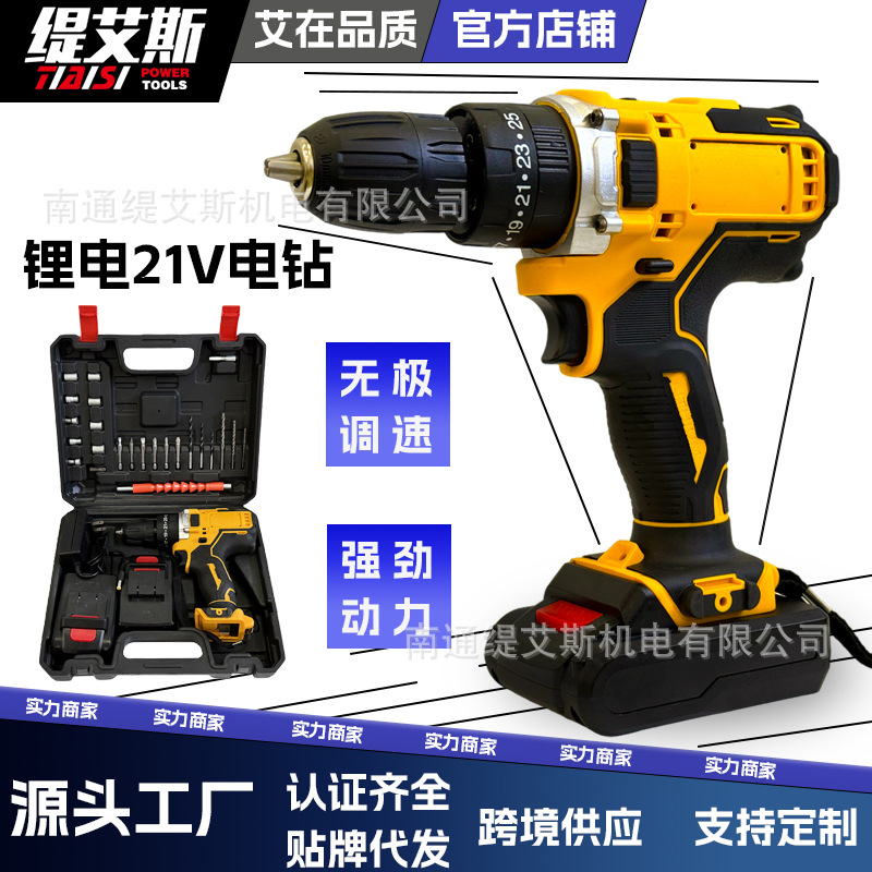 源工場dw項21v電気ドリル多機能懐中電灯ドリルリチウム電気ドリル電動ドライバーセットクロスボーダー