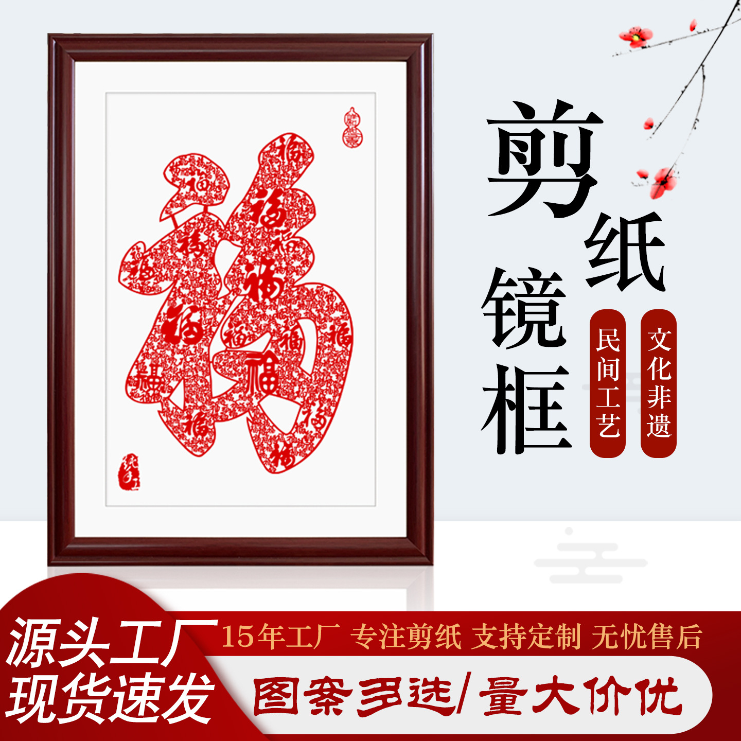 中国風の特色のある蔚県の切り紙の額縁は実木a 3をまねて中国式の家庭装飾画を飾って礼箱を配合します。