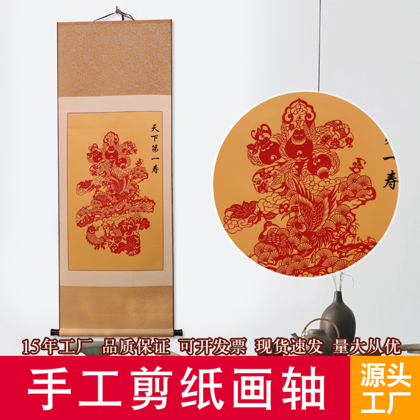 メーカーは蔚県の手作りカット紙の画軸を提供しています。