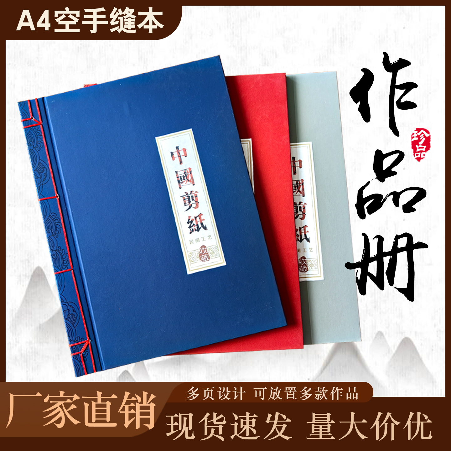 中国風手縫い汎用切り紙作品収集収納展示冊ギフトブックラベル触感