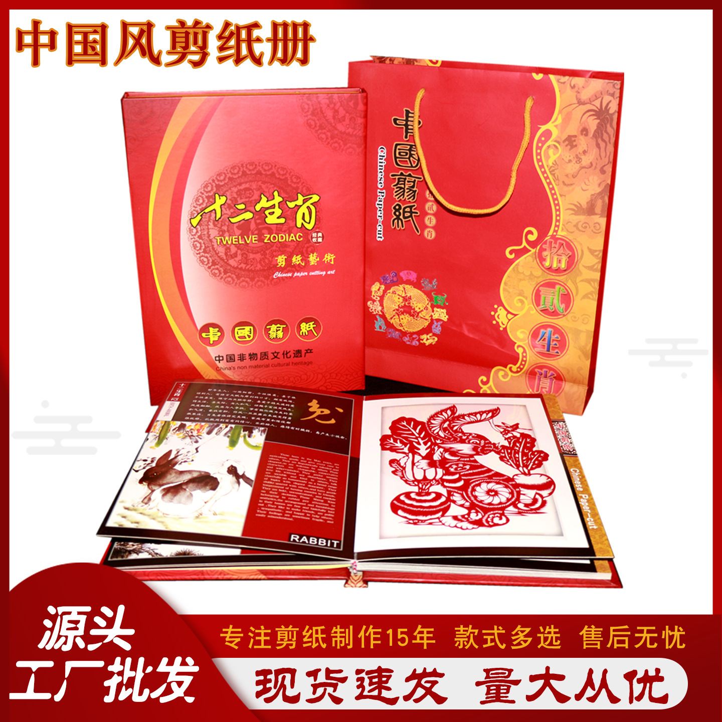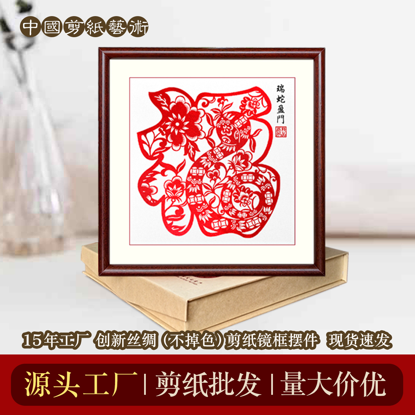 メーカー直販蔚県切り紙窓花十二生肖カラーセット色立体切り紙実木画枠完成品相
