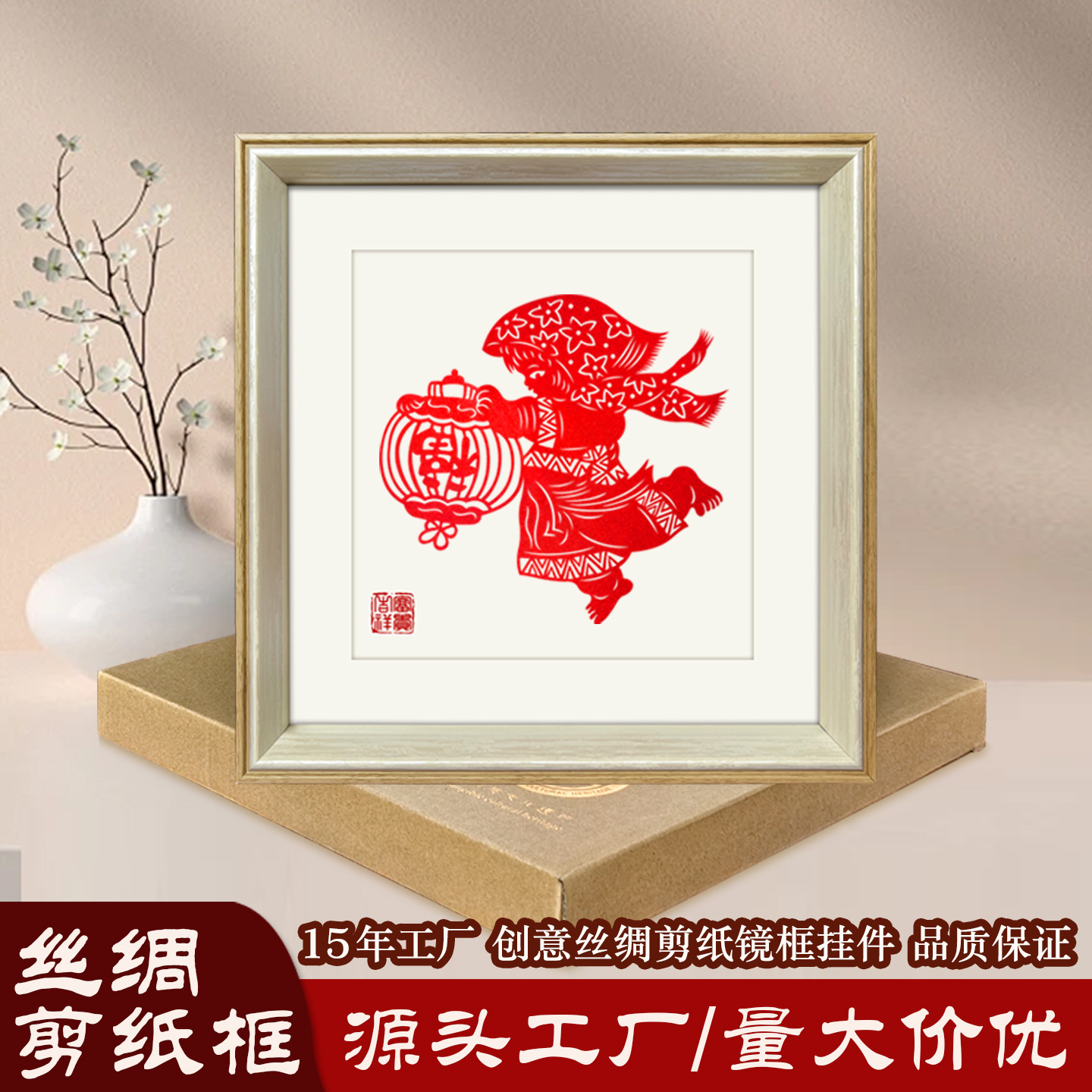 メーカーは威県の切り絵窓飾り絵軸を卸売し、人物画の絹装飾を混在して販売し、海外への贈り物としての手作り品を提供しています。