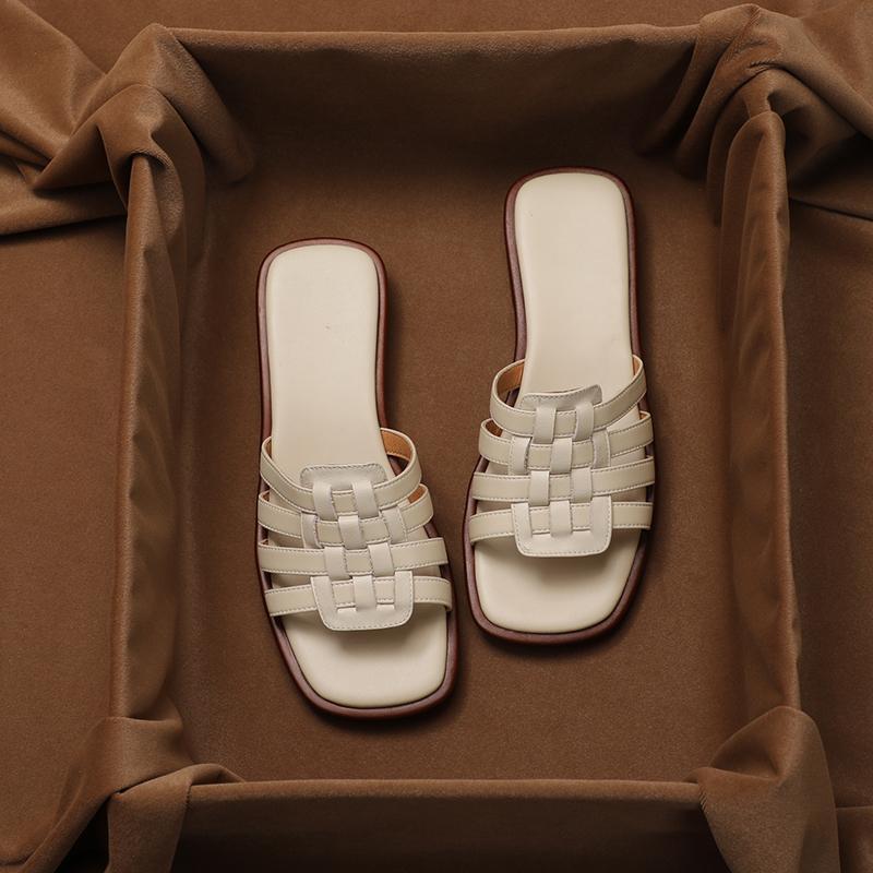 女性用フラット滑り止めサンダル、ファッショナブルなアウターウェア、2025夏の新しいレトロカジュアル多用途ビーチサンダル