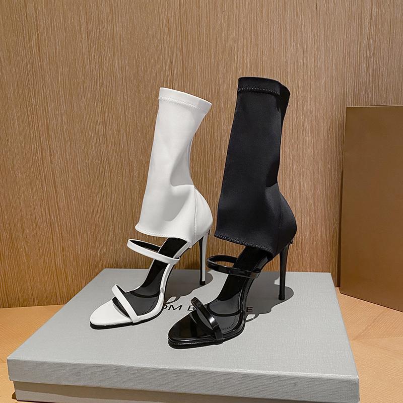 ブーツの女性の夏のやせた足の季節のブーツの2024項の太いヒールのネットの靴の先の中とネットの紗の高い筒のサンダル