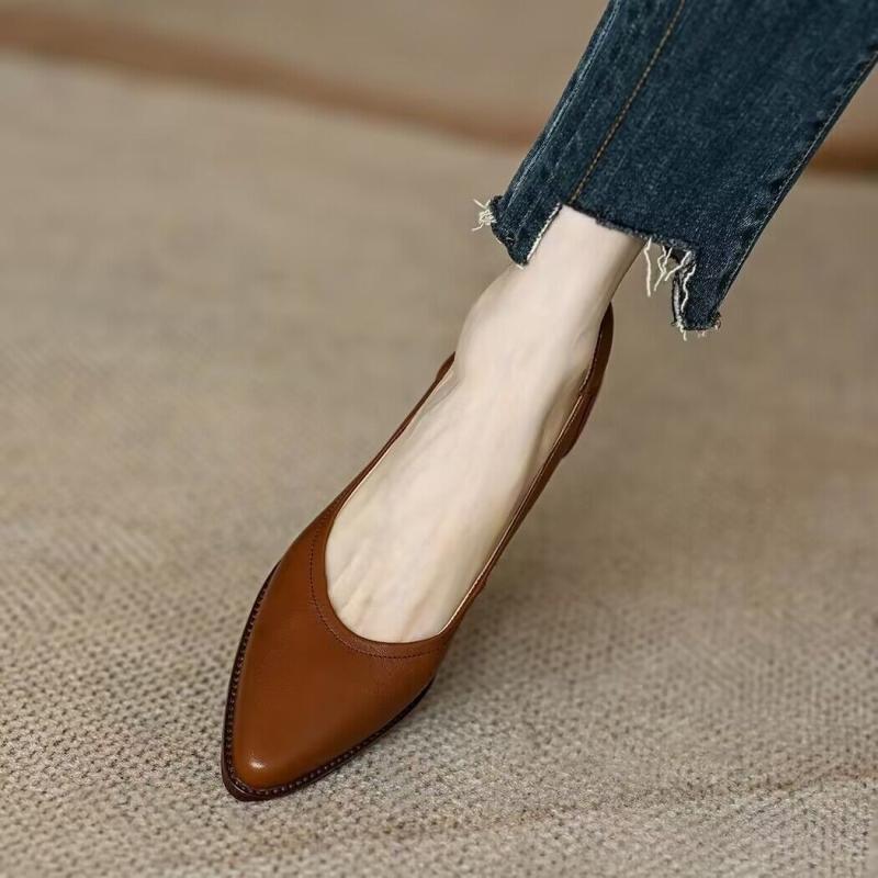2025年春秋新作 レトロ風カラーリング加工 チャンキーヒール パンプス レディース ポインテッドトゥ シンプル 通勤 スリッポン