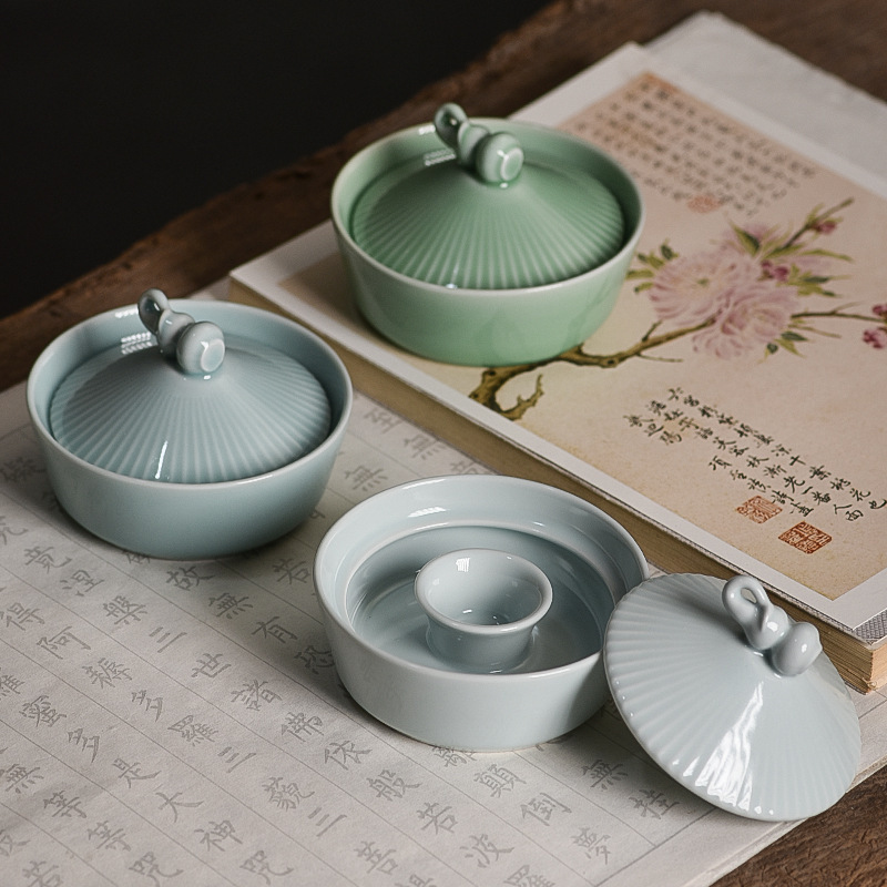 笠火鍋硯台レトロ学生用多機能陶磁器硯台毛筆ペン入れ墨池カートリッジ蓋付き書道