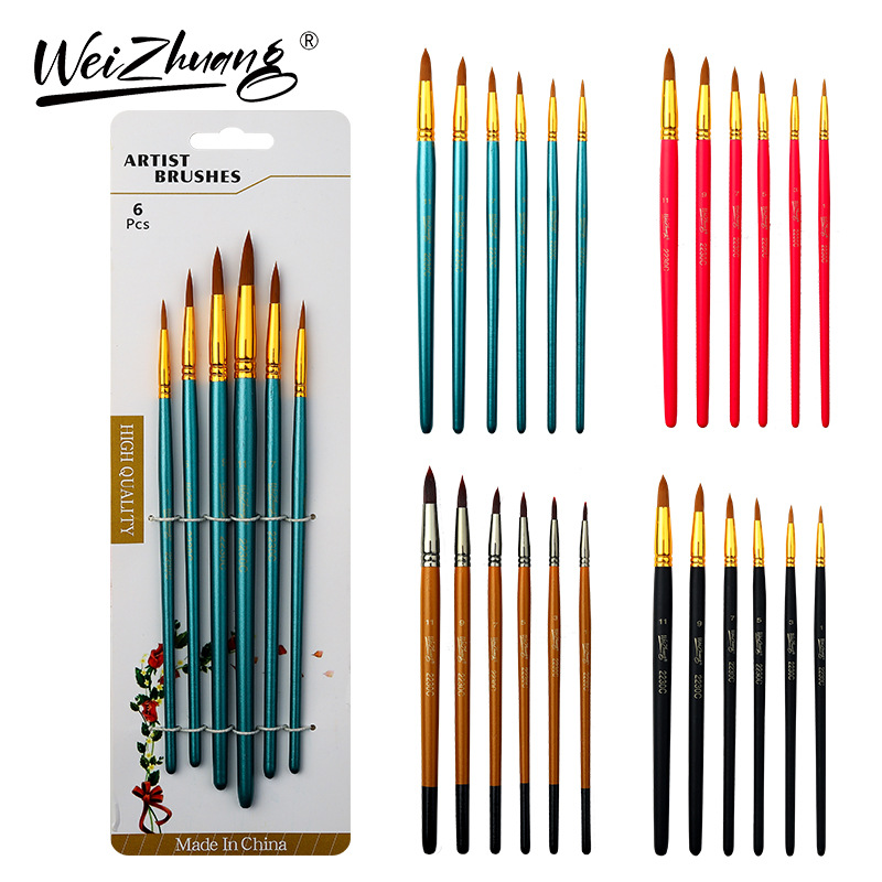 クロスボーダー6本の木の棒の先の絵筆セットのアクリルペンの水粉セットの絵筆の学生diy美術画の油絵