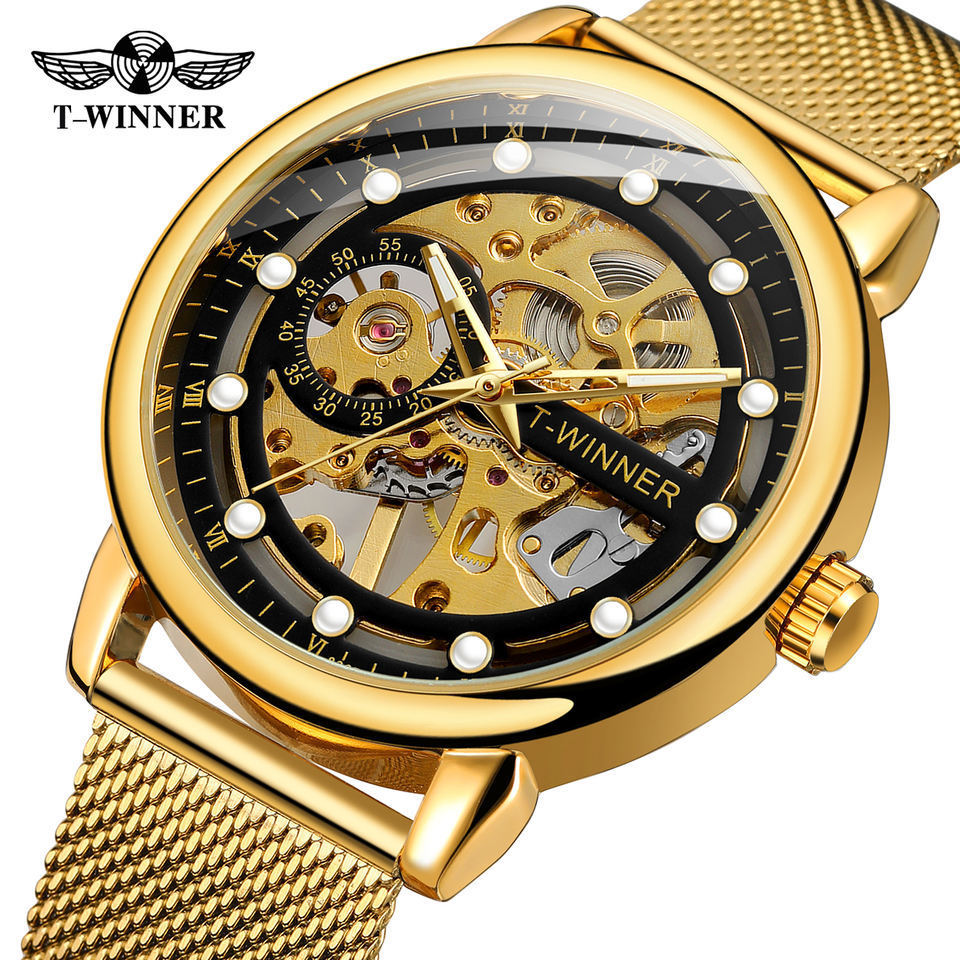 2022新型t-winner欧米男性腕時計ファッション透かし彫り手動機械時計代発