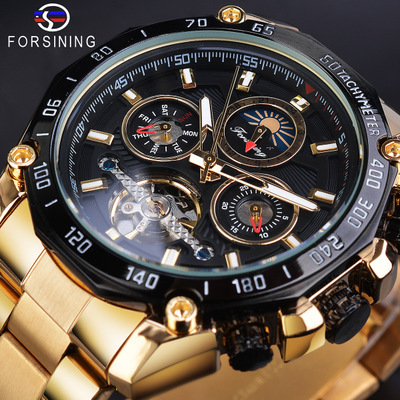 新しいFORSININGファッションジャイロ多機能カレンダー週全自動機械男性時計