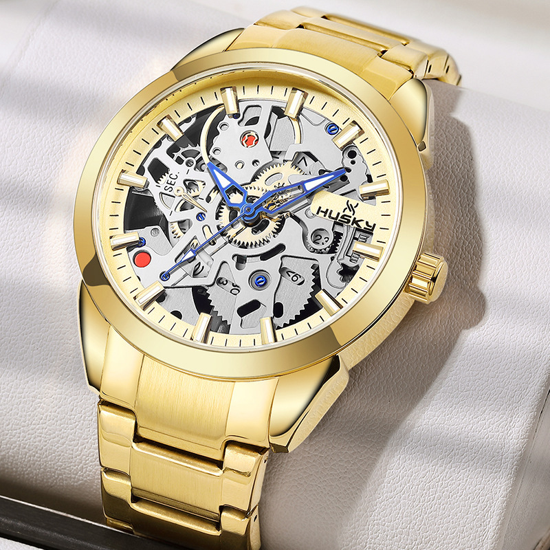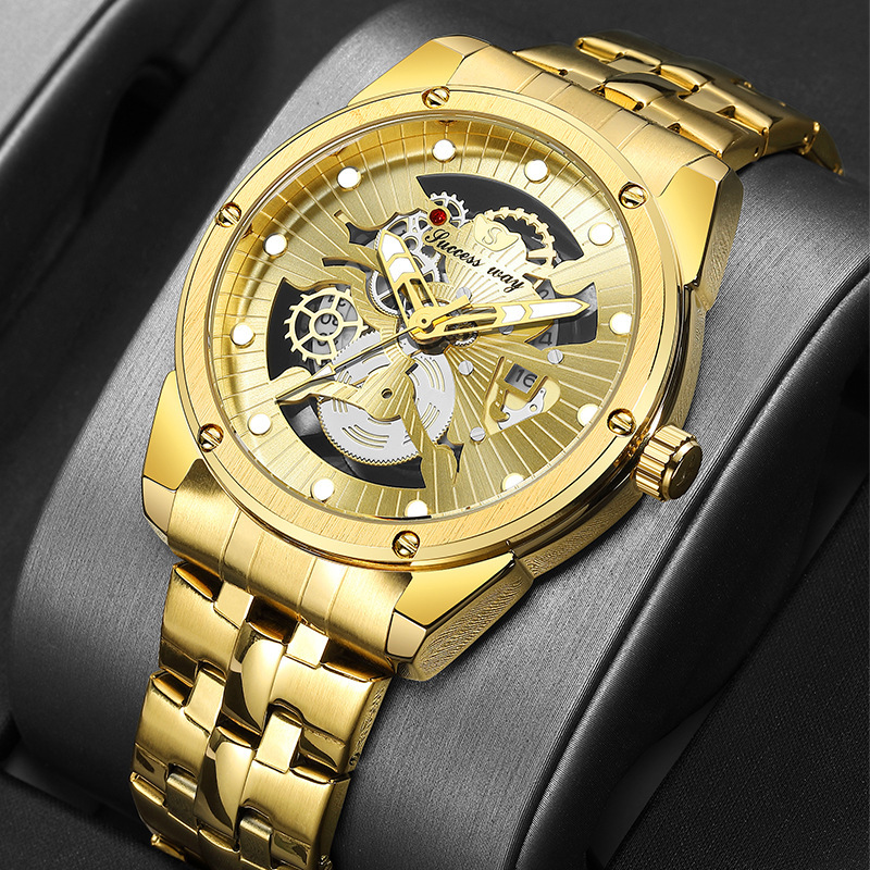 外国貿易の人気は機械の腕時計の両面の透かし彫りのファッションの潮流の男性のビジネスの鋼帯のカレンダーの腕時計をまねます。