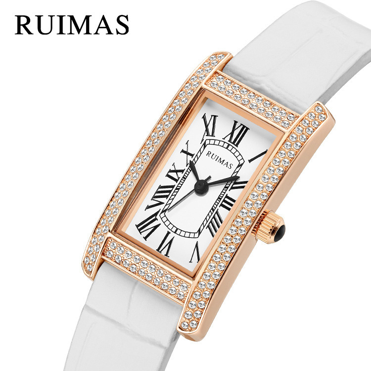 2023新型RUIMASはダイヤモンドの小さい方の時計を入れて軽くて豪華なファッションの石英の時計の気質の女神の腕時計を飾ってやせている女性の腕時計を現します。