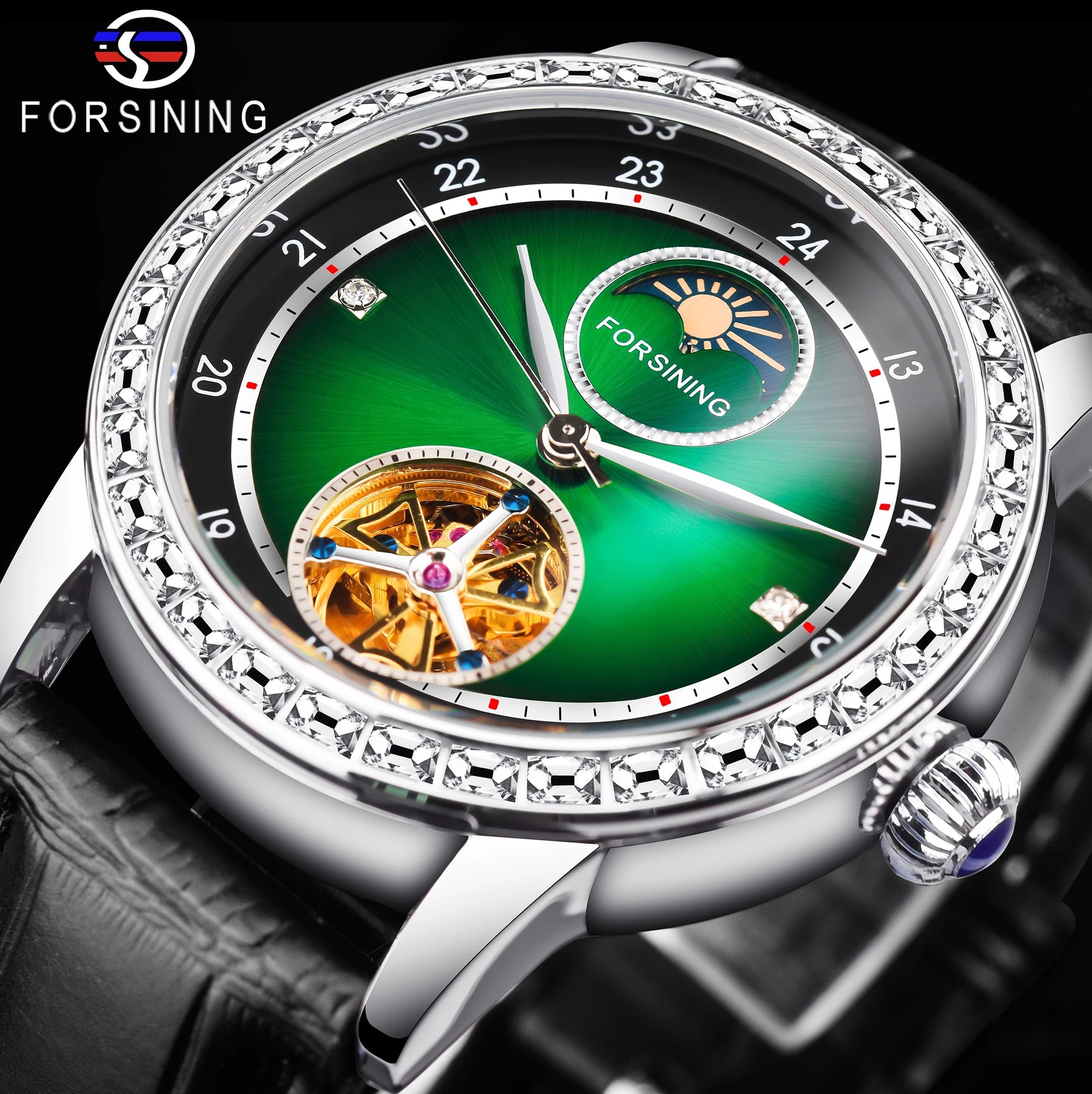 2022新しいforsiningスイスデザインメンズファッションカジュアルジャイロフライホイールフルオートマチック腕时计