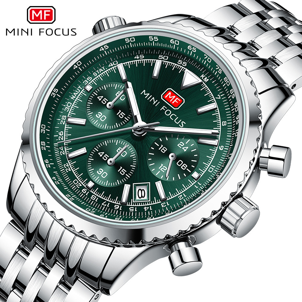 Mini focus腕時計ファッション男性時計多機能石英時計航空時計男性腕時計精鋼帯0463g