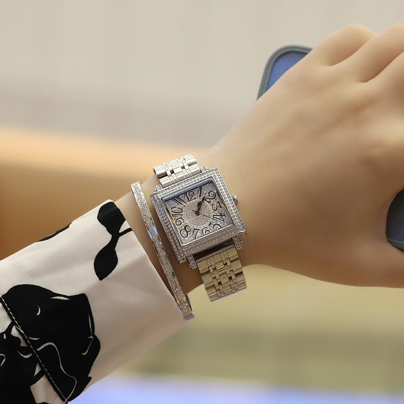 ファッション逸品山度士四角形ファッション腕時計男女カップル鋼帯カレンダー防水鋼帯石英腕時計