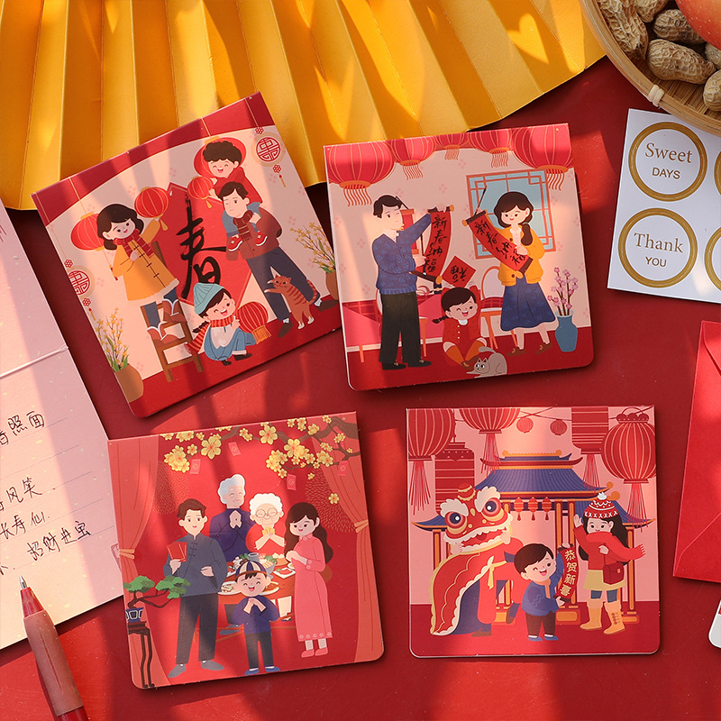 レトロ中国風古典2024新年グリーティングカード旧正月元旦感謝文字祝福カードメッセージカード卸売り