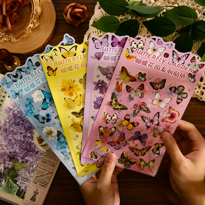 蝶シリーズ復古手帳シールpet防水無裁断レーザーdiy装飾コップノート小ステッカー