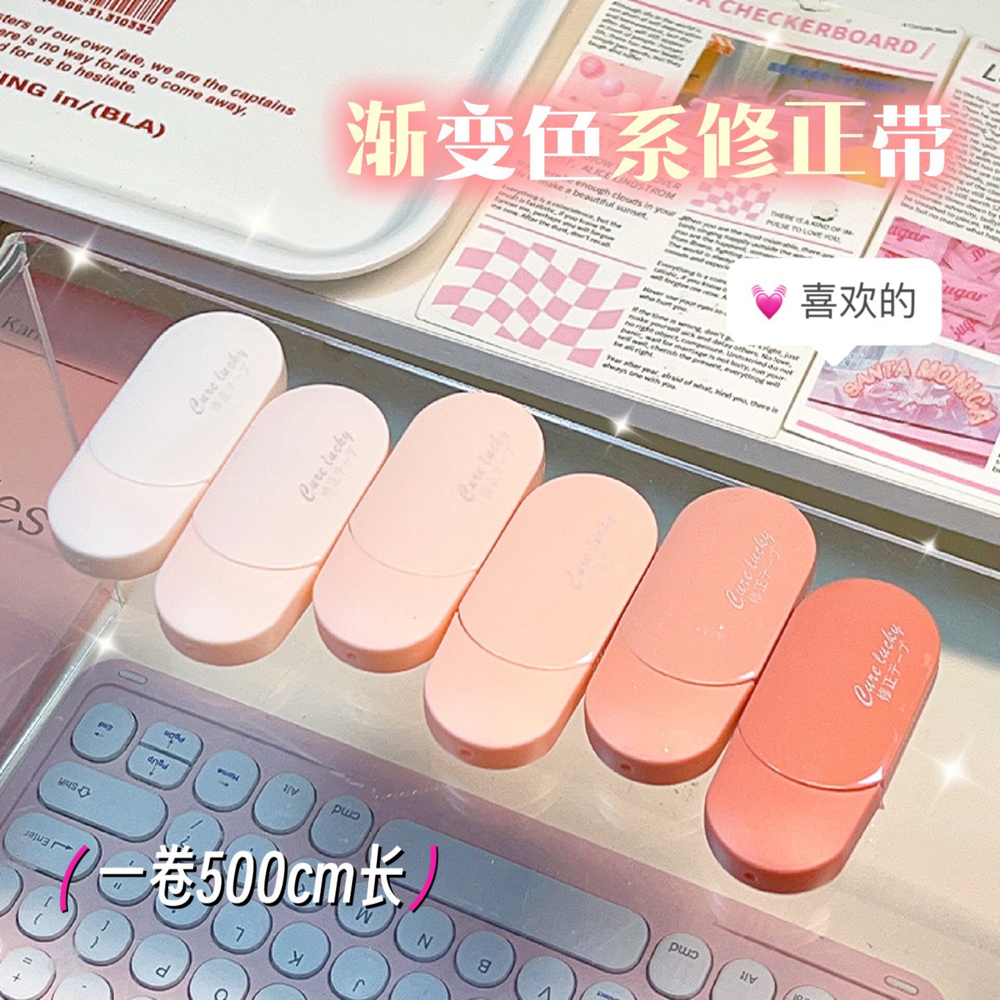 グラデーション色カード式高颜値修正帯滑らかで静音大容量ネット赤爆金ディザトーン同型塗装テープ