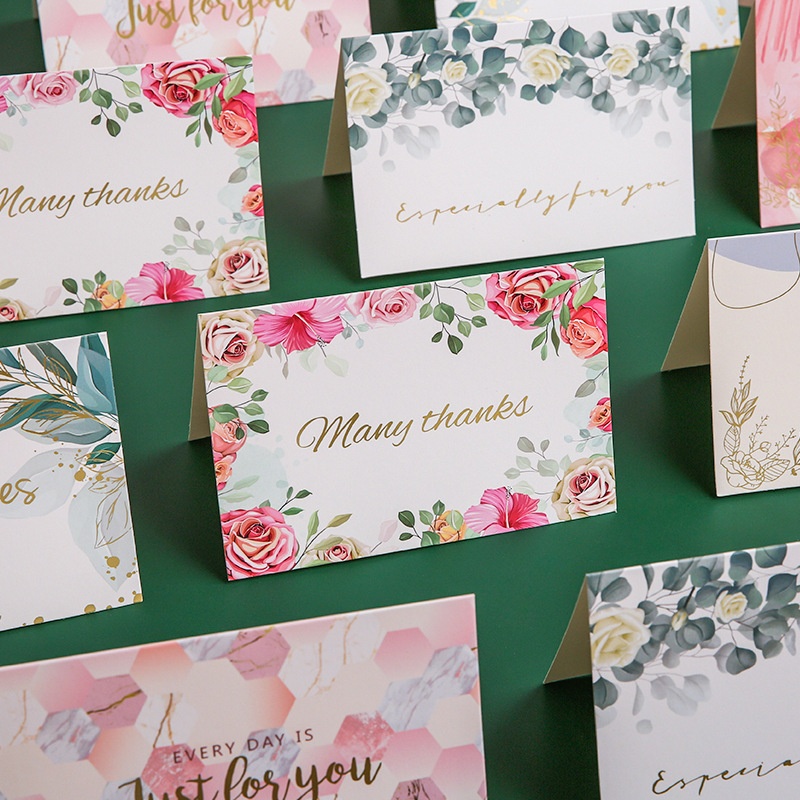 シンプルな小清新箔押し花卉植物英語アルファベットグリーティングカード中秋元旦節日感謝祝福小カード
