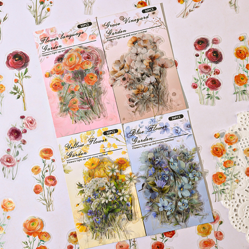 パターンムーブメントシリーズイン植物と花防水 PET ステッカーパックハンドブック DIY 装飾ステッカークリエイティブコラージュ