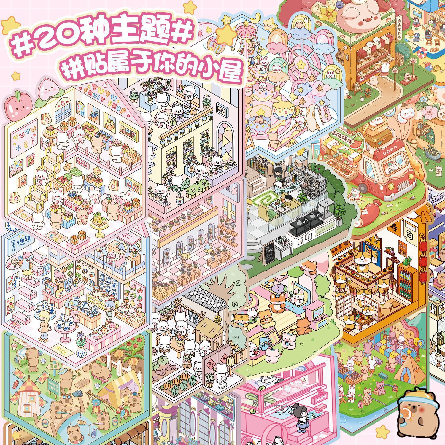 韓国漫画造園ステッカーかわいいクリエイティブビジュアル 3D 立体キャビン減圧造園シーンノートブックステッカー