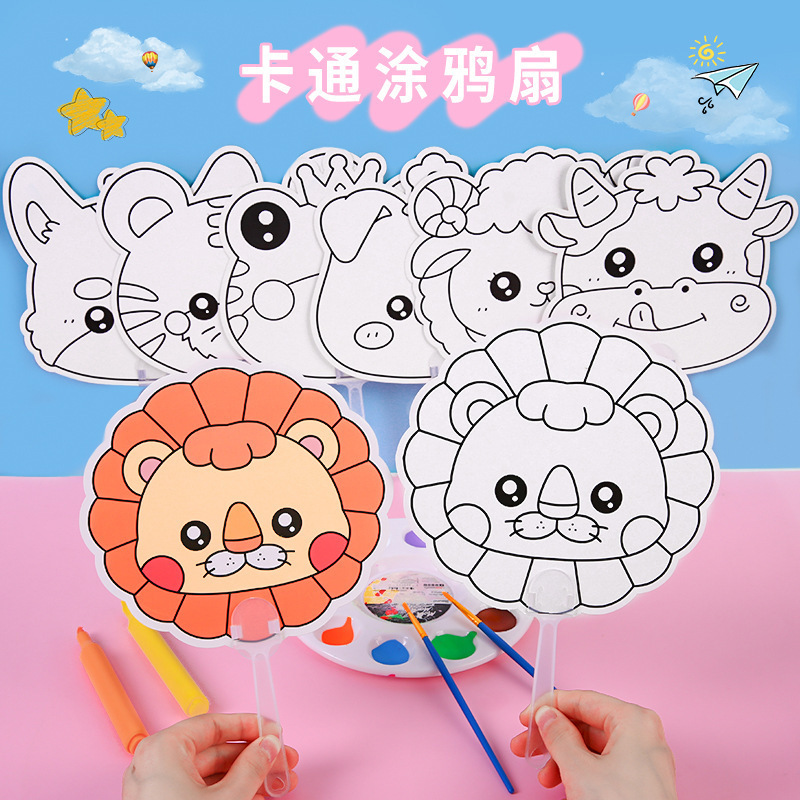 漫画空白の小さなファン diy 手作り材料パッケージ子供の着色絵画ファン幼稚園活動落書きファン