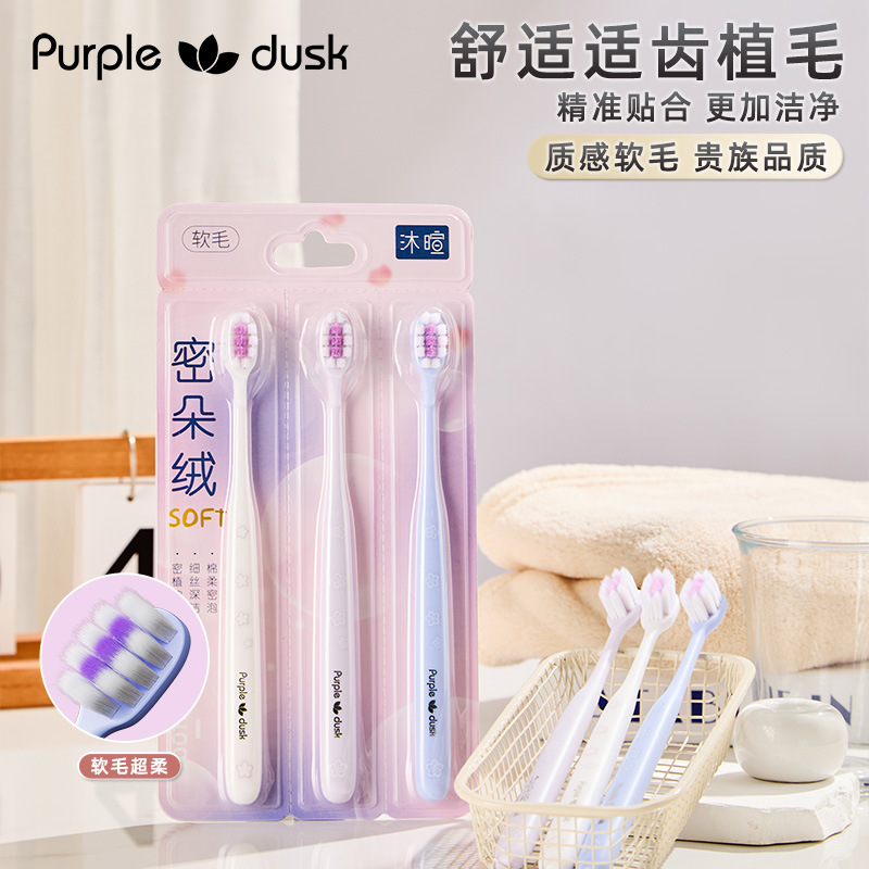 3本の柔らかい毛の成人の歯ブラシのロマンチックな紫霞の絨毛感の保護の歯茎の超細い毛の深層の清潔な歯の家庭の服装の組み合わせ
