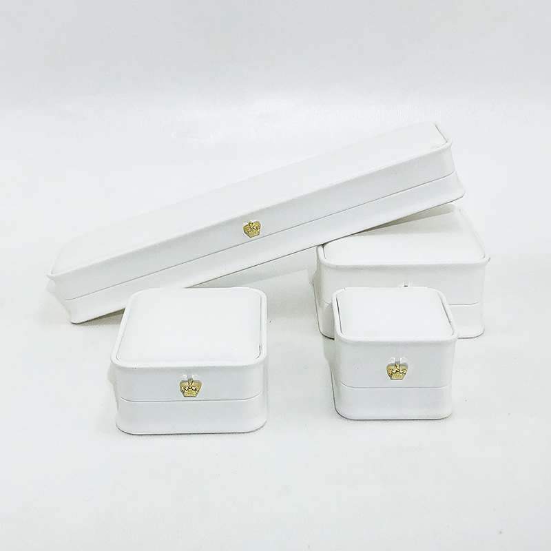 白いpu皮は腰の王冠のアクセサリーの箱の宝石を収めて装飾品の箱の指輪のネックレスのチェーンの箱の現物を包装して卸売りします。
