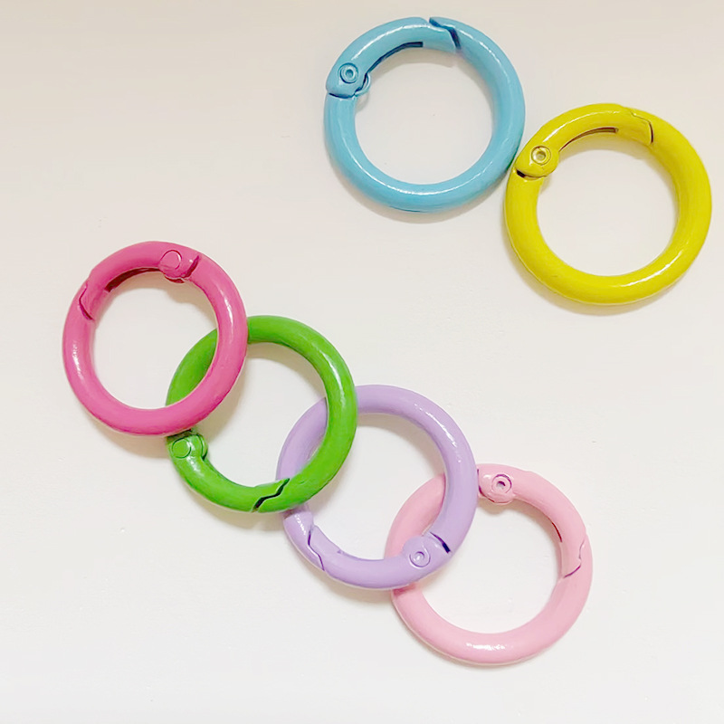 キャンディー色塗装スプリングバックル23mm金属開口スプリングリングキーホルダー円形カードホルダーキーホルダー