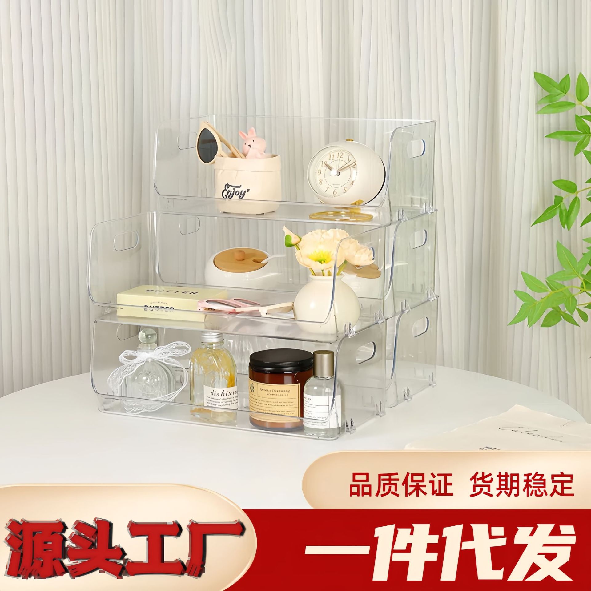 プラスチック透明化粧品収納ボックスデスクトップ用品ボックスキッチン家庭用浴室用スキンケア用品棚