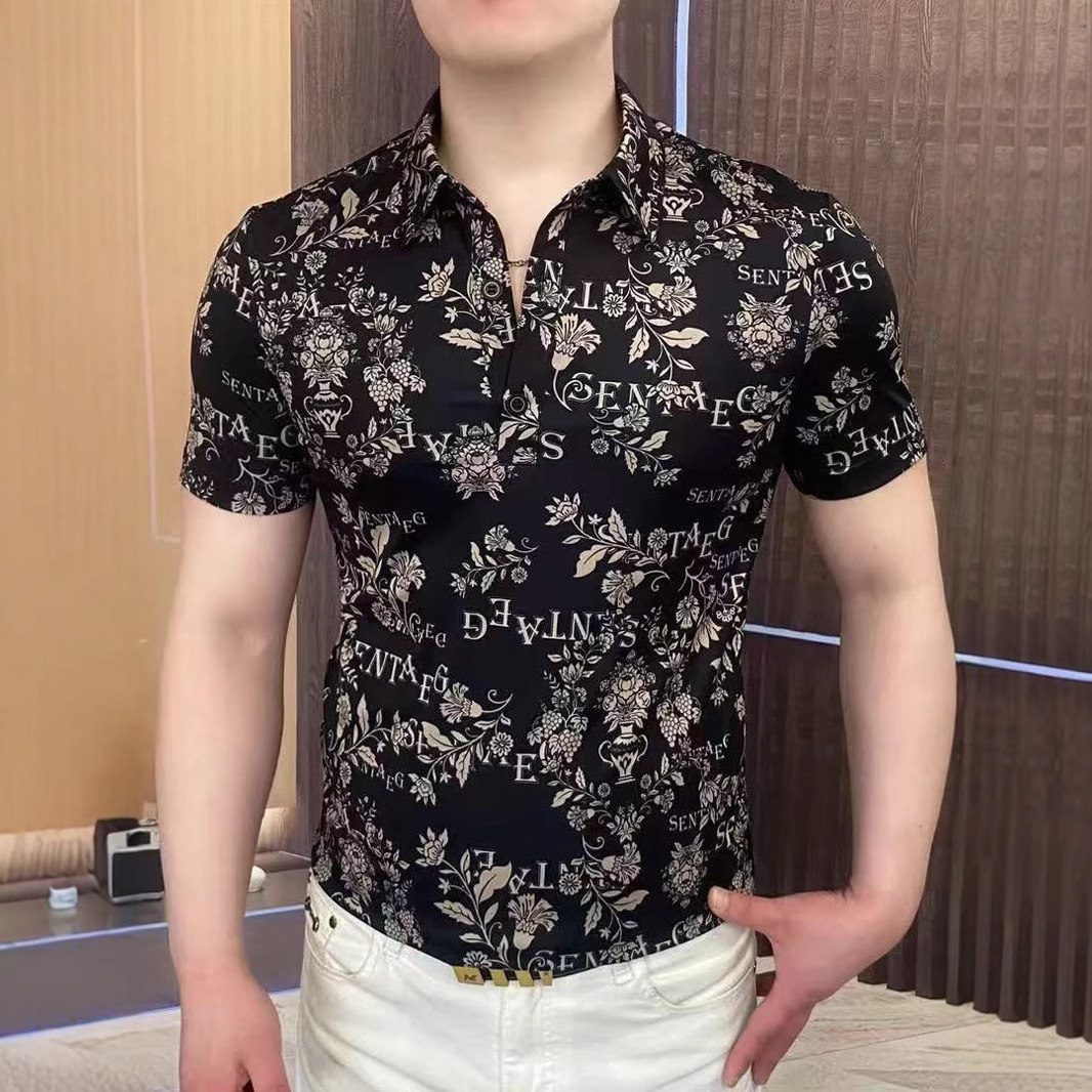 欧品夏男性氷糸半袖tシャツ軽贅沢ファッションシンプルプリント襟軽熟風エアコンpoloシャツ