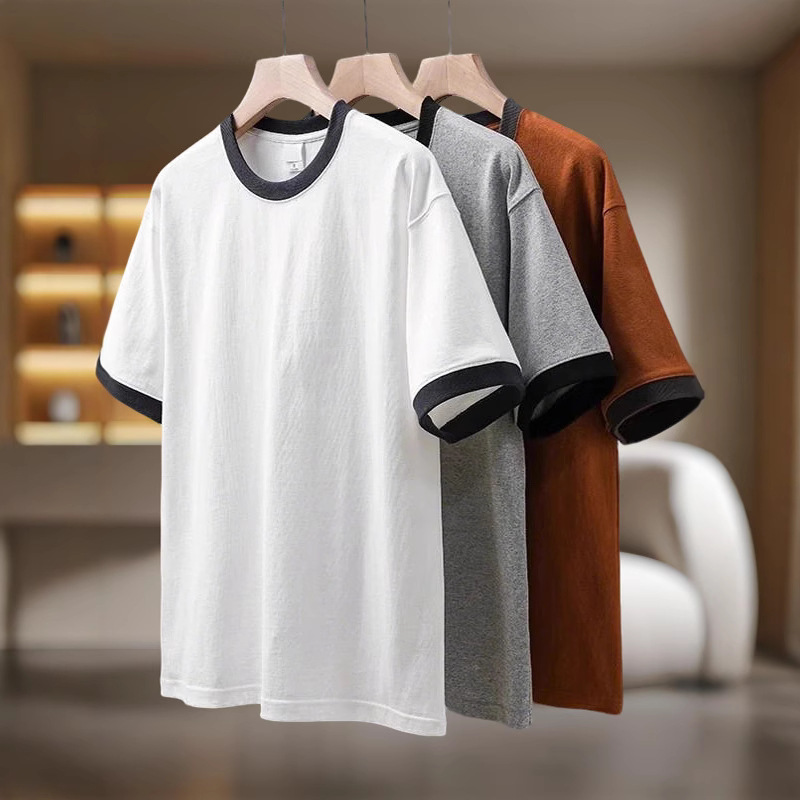 2025新製品320gアメリカのレトロな白い純綿が色にぶつかって半袖をつなぎ合わせてゆったりしたinsカジュアルtシャツ男