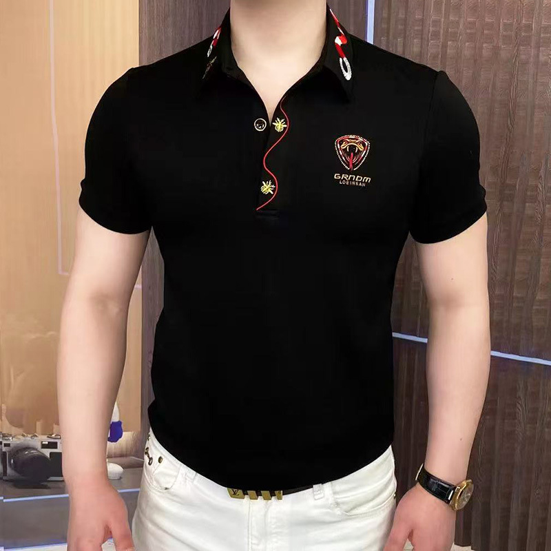 欧品半袖刺繍tシャツ男軽豪華痞帅百合襟poloシャツ高品質ホットドリル金蛇ファッションtシャツ