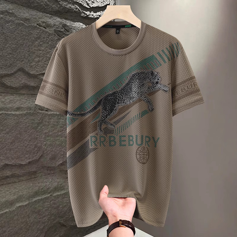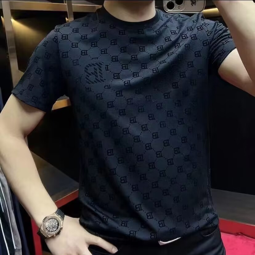 2025年夏の新型男性半袖tシャツの個性的なホットドリルの丸首氷糸半袖tシャツの上着