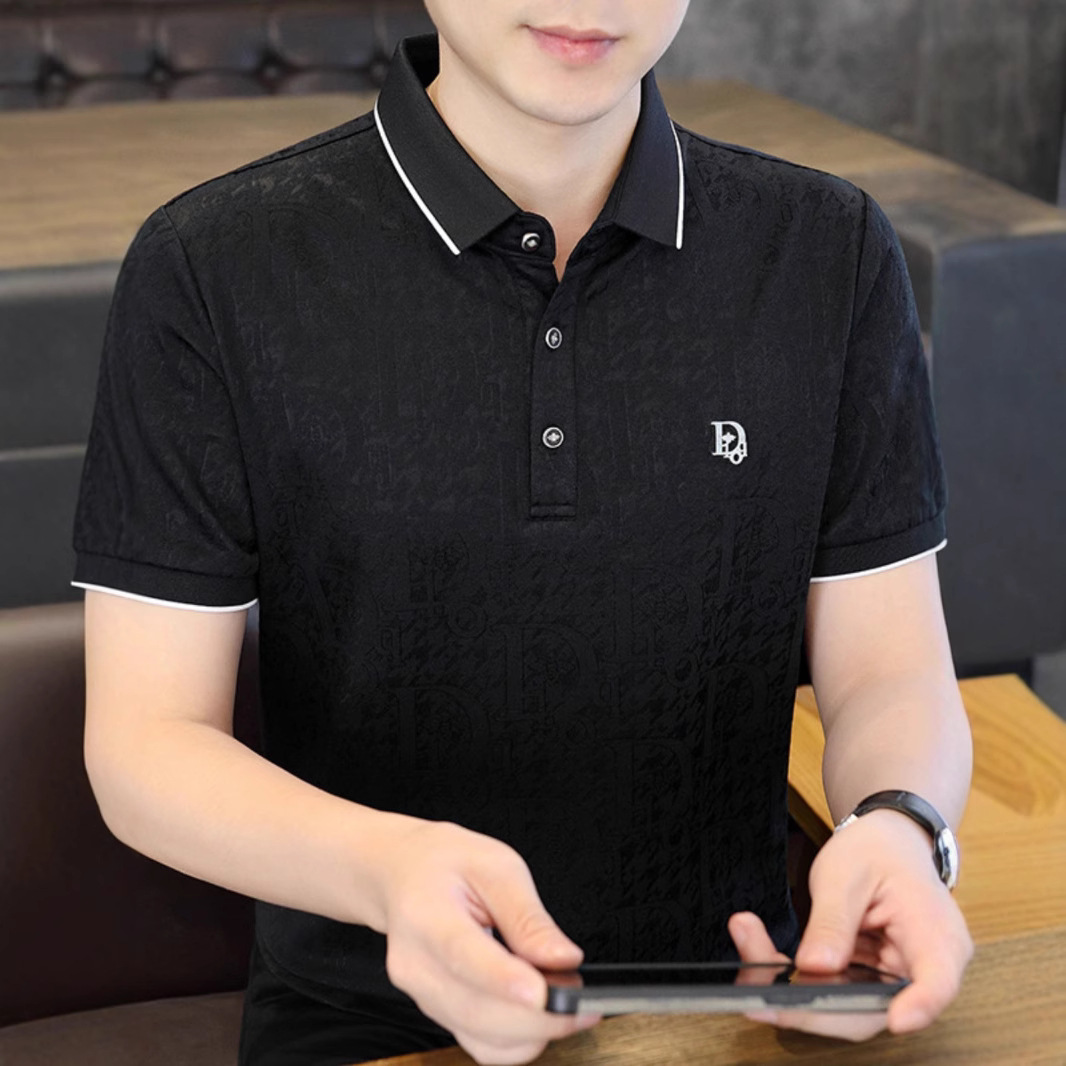 夏の新型ビジネスカジュアル半袖ポロシャツ男性高級感メンズ上着中青年折り襟tシャツ潮