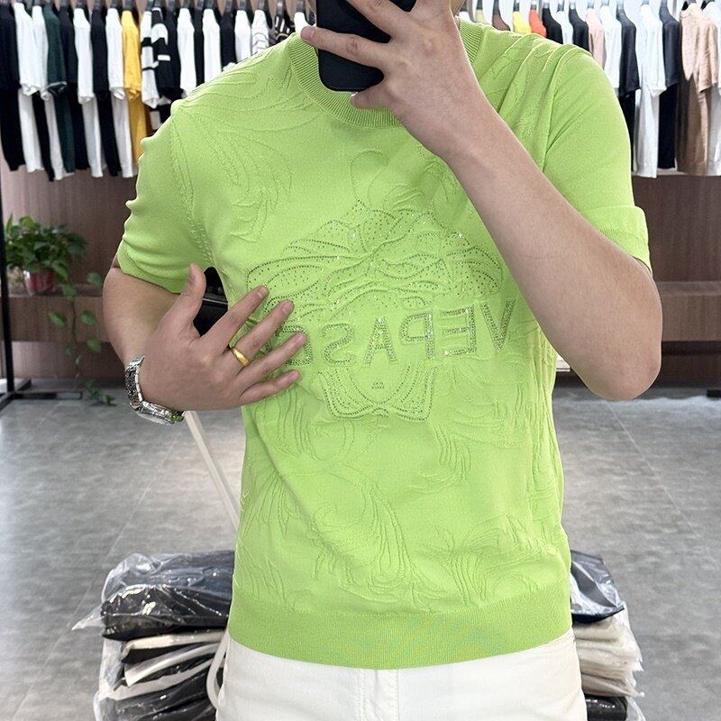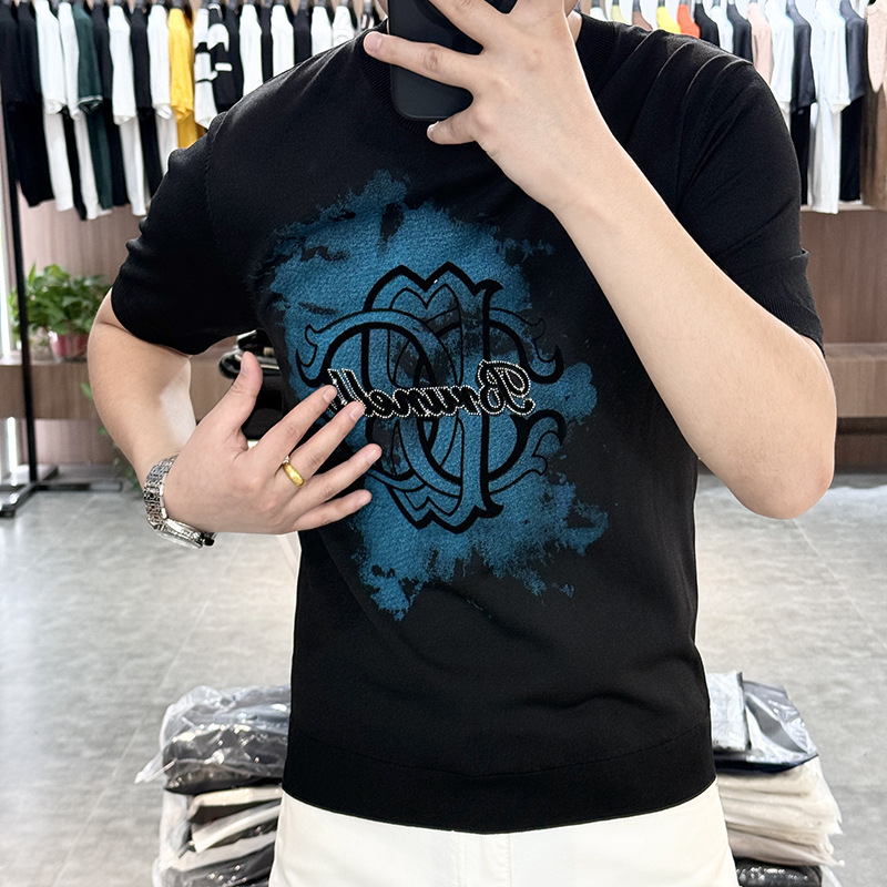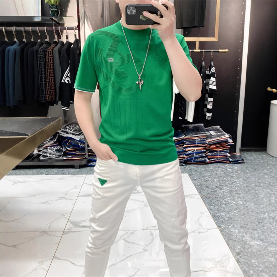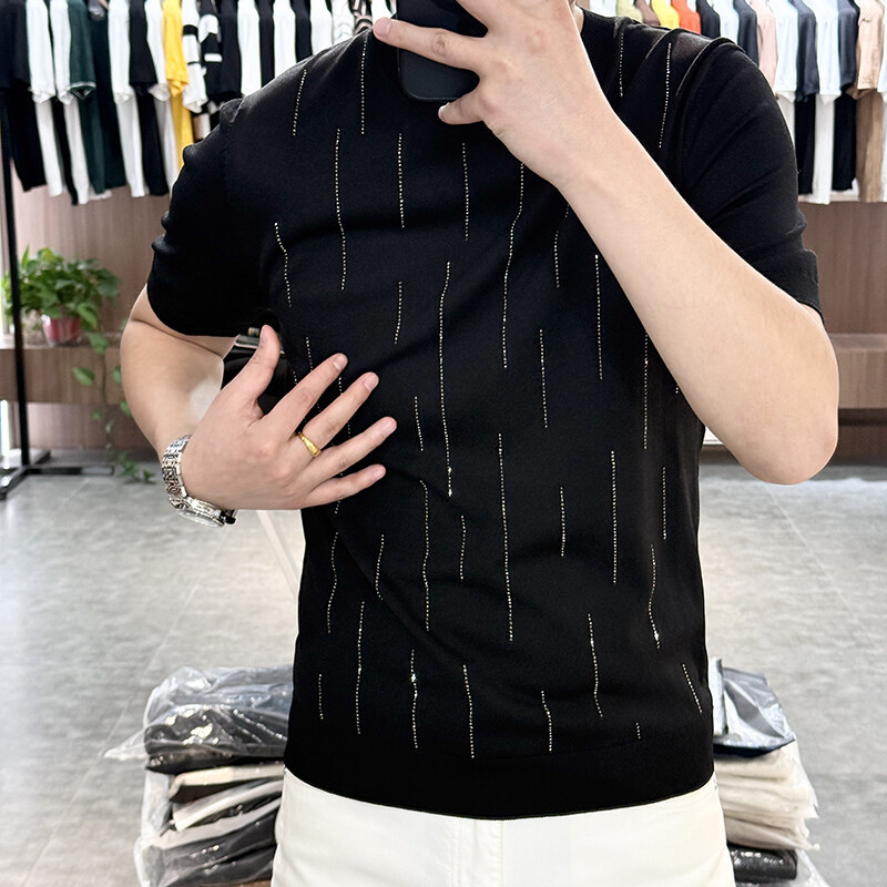 欧品男性氷糸ニットtシャツ新型2025かっこいい高級夏ファッション修身半袖夏上着