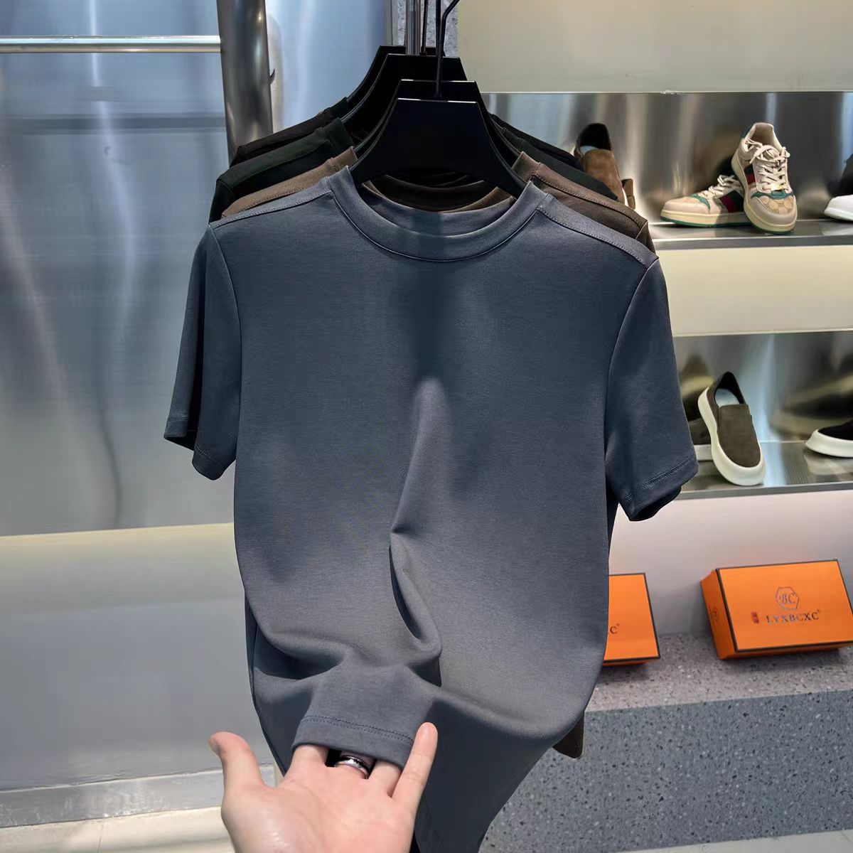2025春夏男性の新型百合ネット版純色半袖丸首クラシックファッションシンプルメンズtシャツ半袖