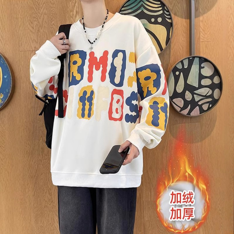 ベルベットの厚い丸首のセーターの男性のファッションブランドのアルファベットのプリントのプルオーバーのごろつきのハンサムで怠惰なシャツの青年tシャツ