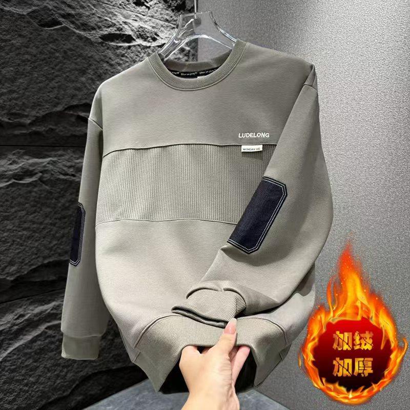 2024秋冬新作ファッションカジュアル上着メンズ長袖丸襟プルオーバー