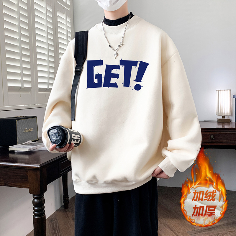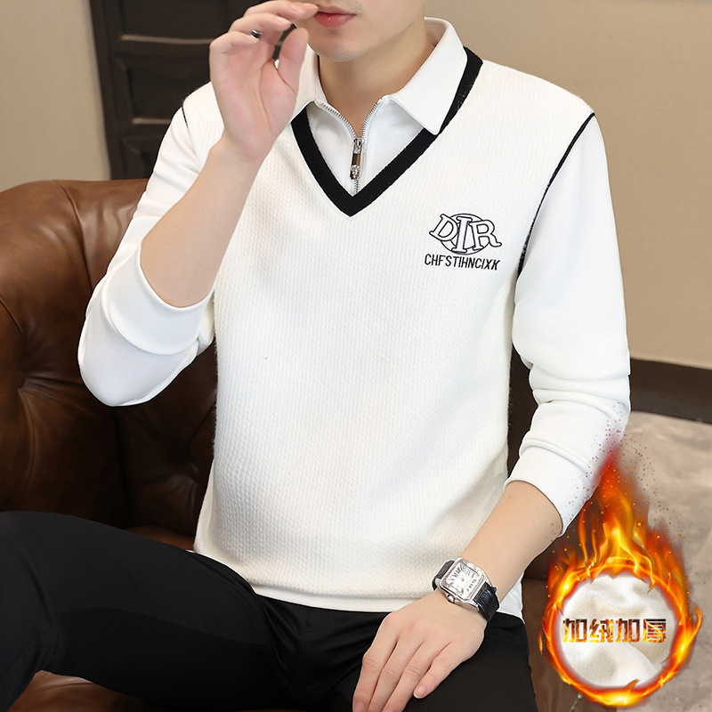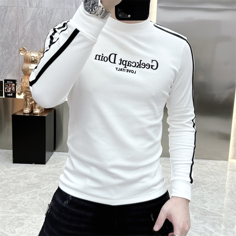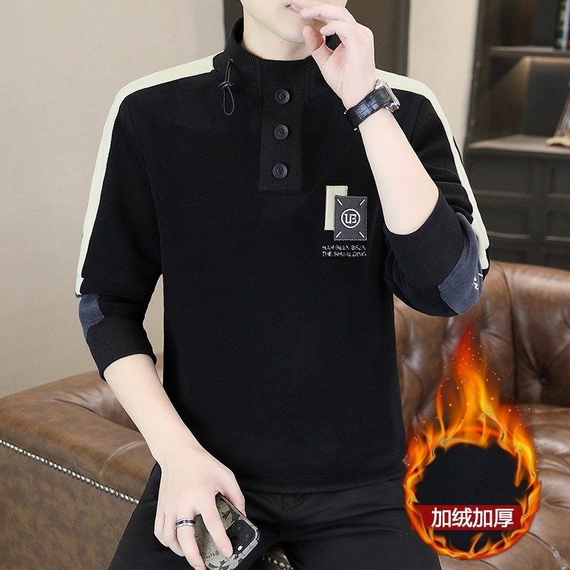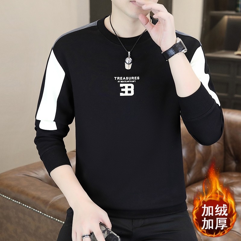 秋冬の新型ベルベット厚手の男性ファッション丸首長袖tシャツ