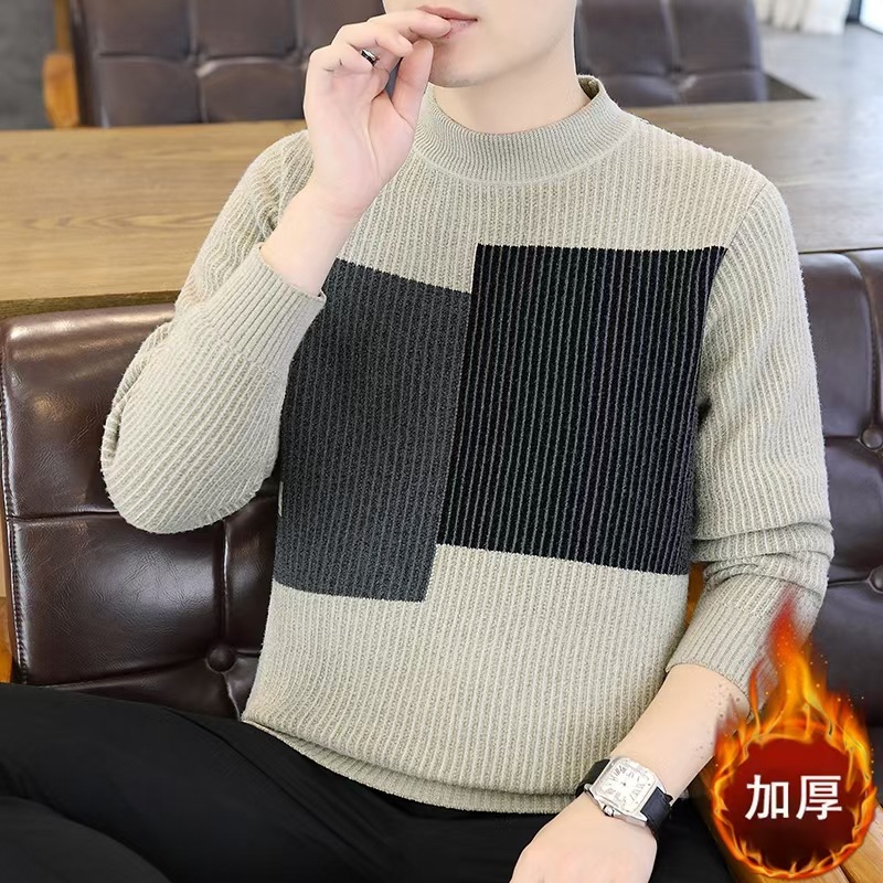 セーター男2024秋冬新型高級感半高襟衝突色ニット男タイプ冬は保温インナーを厚くする