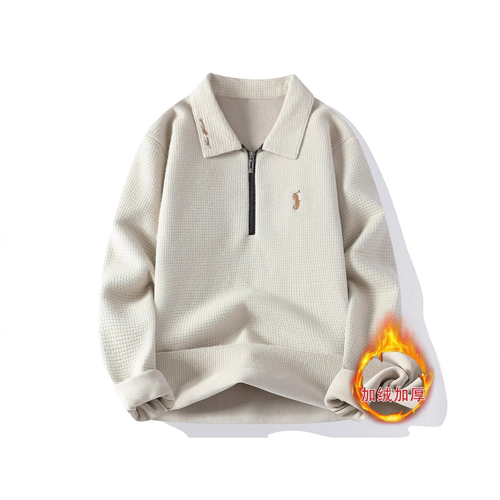 一体パイル半ファスナー襟セーター男性ベルベット厚手シャツ襟ニットシャツ2024冬の新型シャツ