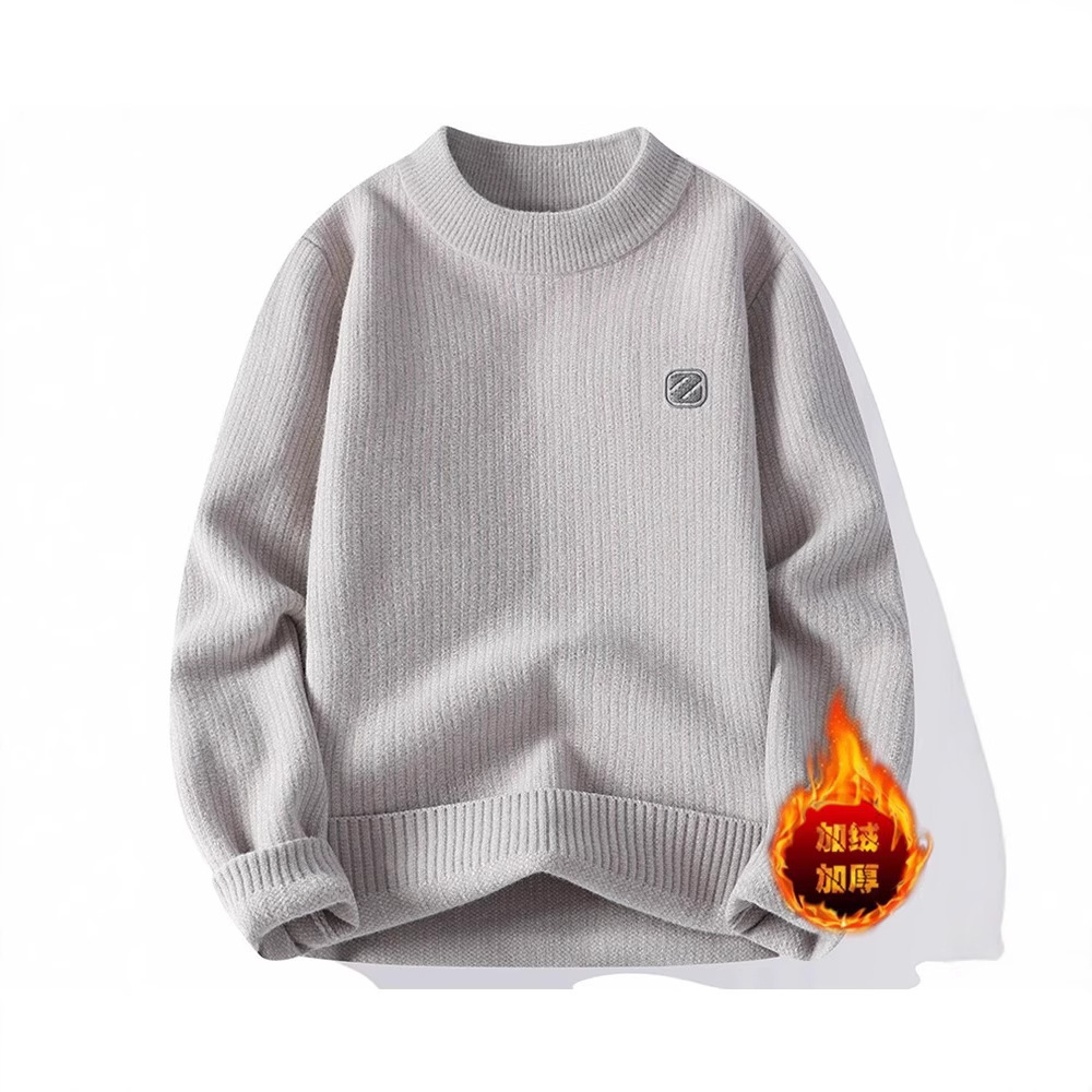男性の秋冬の丸首とベルベットの厚い保温服青少年学生のニットのファッション刺繍セーター