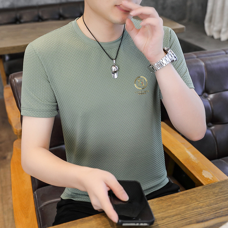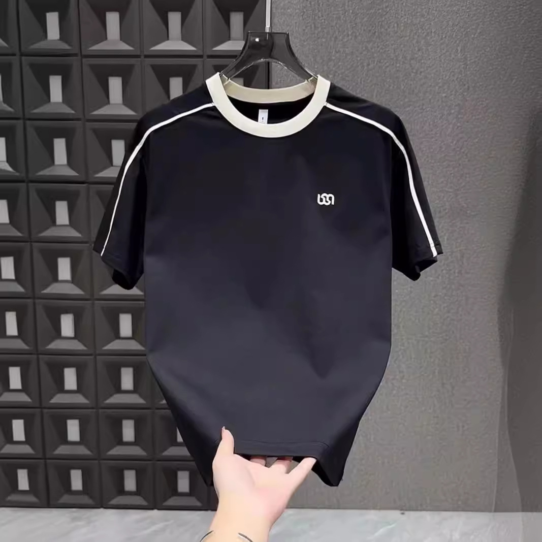 夏のメンズ半袖 Tシャツアイスシルク薄い通気性クール半袖トレンディな Tシャツ 2025 新しいラウンドネックトップ