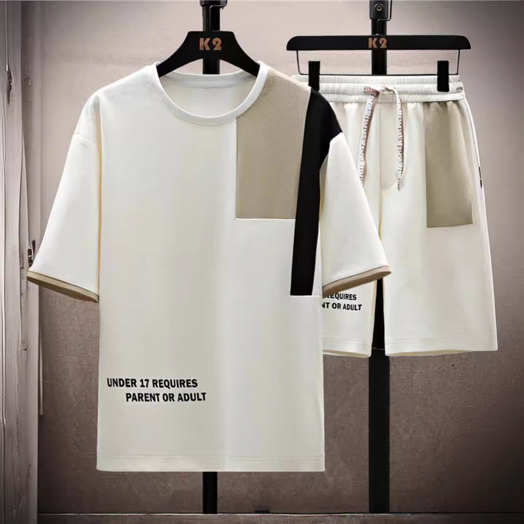夏のカジュアルスーツ男2024新型アイスtシャツ男半袖半ズボンセットと潮牌痞帅服